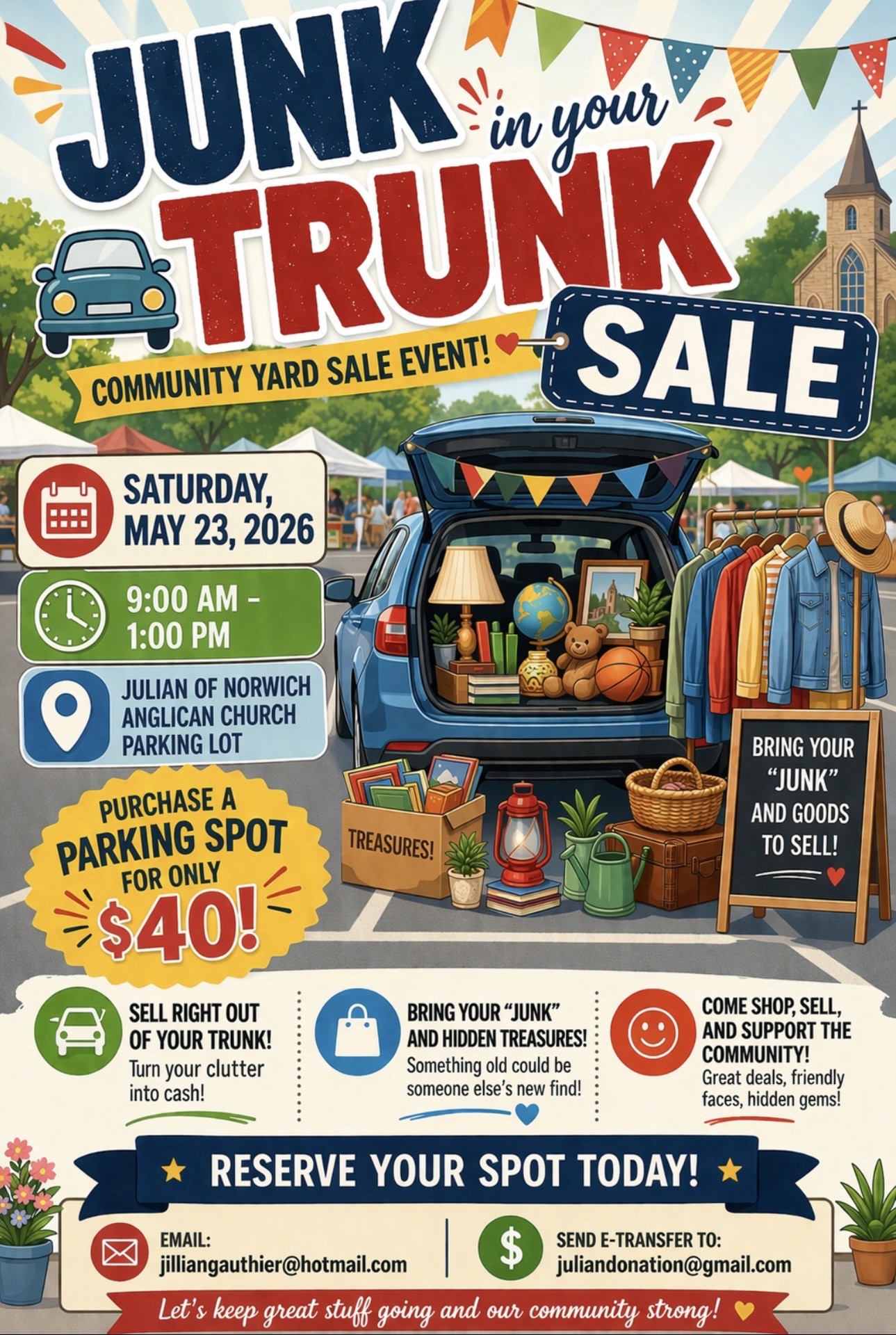 Got junk to clear out or items to sell? We’re looking for vendors to join our Junk in Your Trunk Sale!